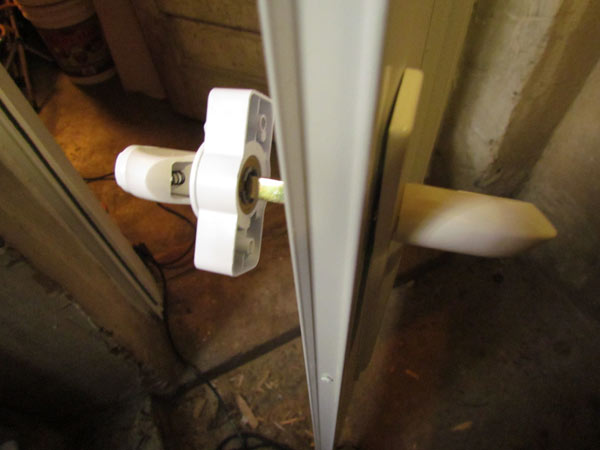 After the mounting holes are drilled, you just pass the square shaft (...right on...) through the center and connect the inside and outside handles together.