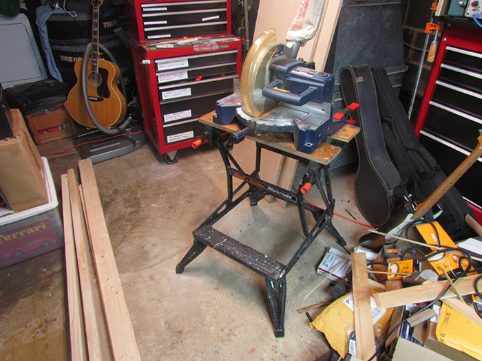 Cut the 2x6s to length with my cheap semi-trusty Ryobi miter saw. Works great for straight cuts, but not so good with actual miters.